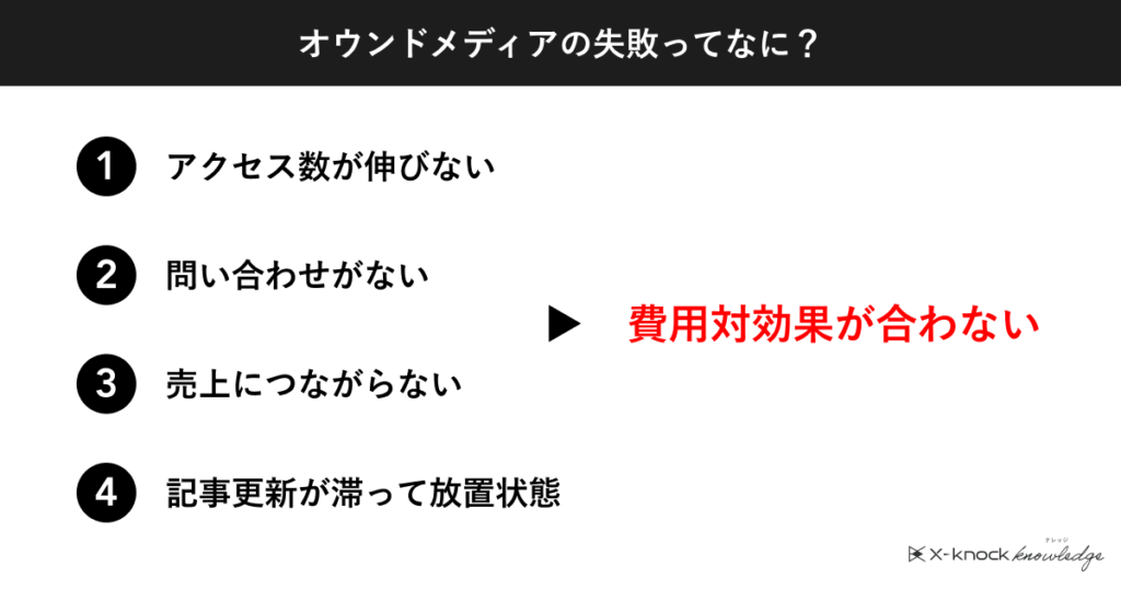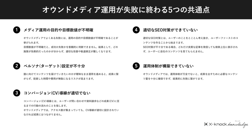 オウンドメディアが失敗に陥る共通点は、次の5つです。