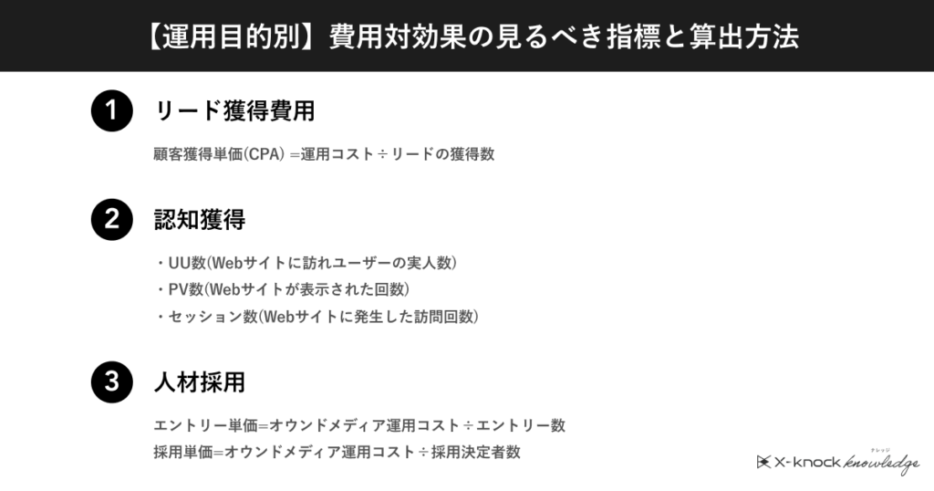 前述したようにオウンドメディアの運用にはさまざまな目的があり、その目的によって費用対効果の求め方は異なります。