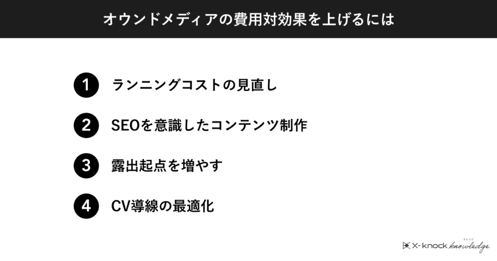 ここでは、オウンドメディアの費用対効果を上げる4つの施策をご紹介します。