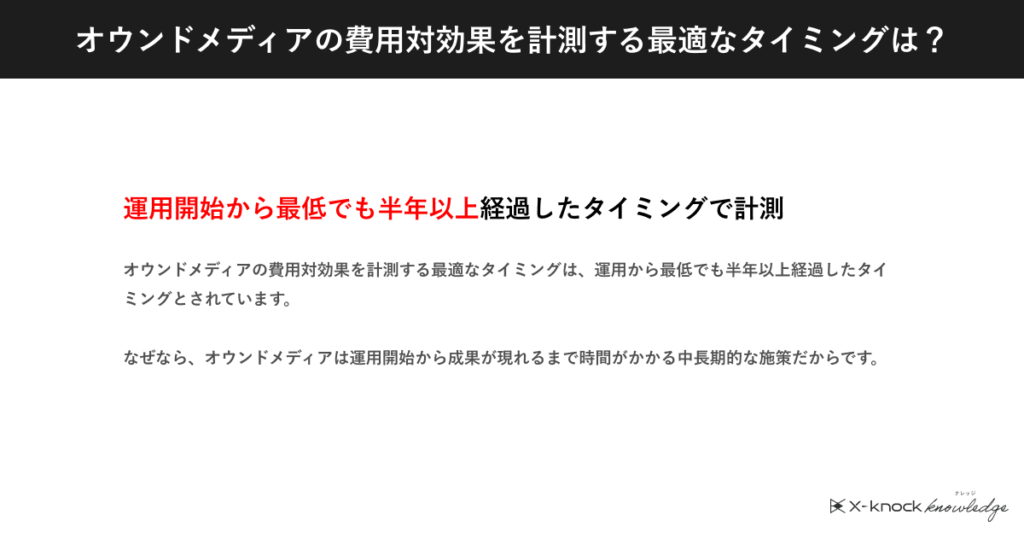 オウンドメディアの費用対効果を計測する最適なタイミングは、運用から最低でも半年以上経過したタイミングとされています。