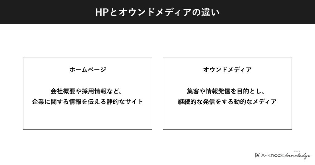 一方、オウンドメディアは、集客や情報発信を主な目的とした『動的なメディア』です。